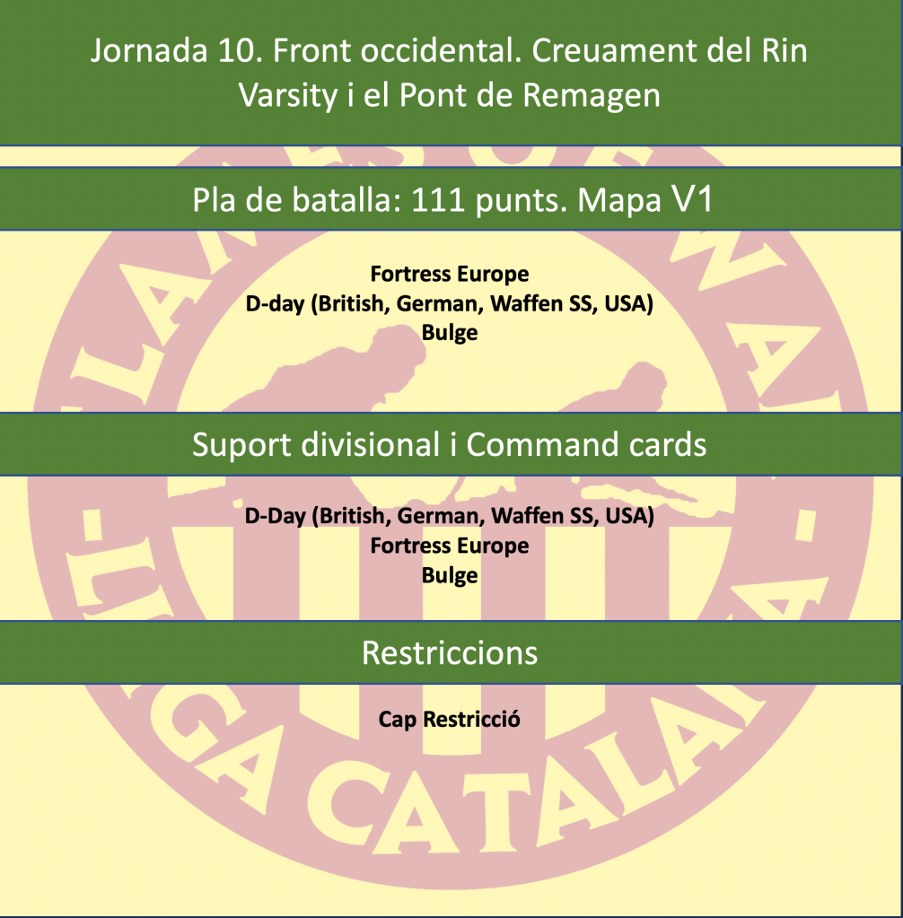 USA El pont de Remagen: Al febrer de 1945 les forces Aliades de l’oest es reunien per a l’avenç final cap a Alemanya. Al nord es van reunir les tropes de l’11è Grup de l’Exèrcit del Mariscal de Camp Bernard Montgomery, al sud, el 12è Grup de l’Exèrcit del General Omar Bradley. Incloïa el Tercer Exèrcit dels EUA, comandat pel General George Patton. El 8 de febrer, el Grup de l’Exèrcit de Montgomery va llançar un atac a les Forces Alemanyes que defensaven el Rin. La força del nord va haver de lluitar al camp ple d’arbres, mentre que la força del sud es va endarrerir perquè els alemanys van deixar anar aigua de una sèrie de preses per inundar els voltants. Passarien dues setmanes perquè les dues forces es reunissin a la riba occidental del Rin.A principis de març de 1945, les forces de Montgomery controlaven noranta quilòmetres de la riba occidental del Rio Rin, la següent tasca era creuar-lo. Al sud de les forces de Montgomery, l’Exèrcit de Bradley també avançava cap a l’est a la recerca d’una via de l’altre costat del Rio. El 7 de març de 1945, van arribar al Rin a Cologne, no obstant això Hitler va ordenar destruir tots els ponts. Però conforme les forces dels EUA exploraven més al sud, van trobar un pont intacte a la ciutat de Remagen. Van sortir corrents cap a ell, vencent la resistència dels alemanys. Just quan estaven a punt de creuar-lo, hi va haver una explosió. Però en contra dels pronòstics, el pont va romandre dret. Un petit grup de nord-americans el va recórrer tallant desesperadament els cables que semblaven de demolició. Comandants dels EUA van creuar amb els seus homes el més aviat possible. Els aliats van penetrar per fi el centre d’Alemanya. A Berlín, la notícia de la captura del pont a Remagen va enfurismar Hitler. Cinc oficials van ser jutjats al Consell de Guerra ia quatre els van afusellar. A més, el comandant alemany que més va patir a l’Oest, el Mariscal de Camp Gerd Von Rundstedt va ser acomiadat, sent la segona vegada que li succeïa en menys d’un any. El va substituir el Comandant veterà Mariscal de Camp Albert Kesselring que havia estat al capdavant a l’Àfrica del Nord i Itàlia.