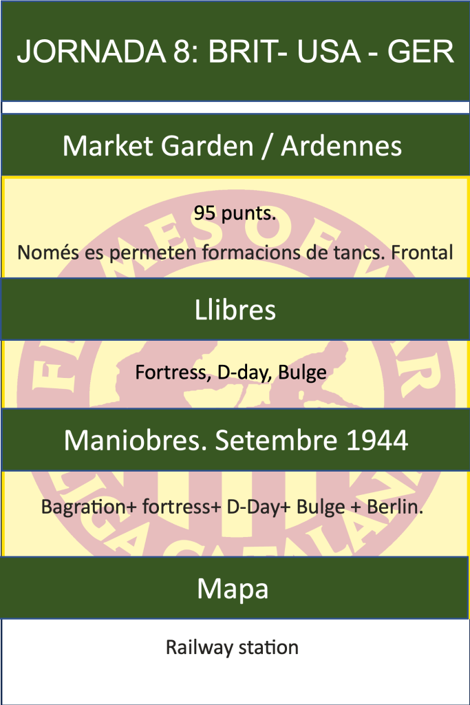 Del 3 al 23 d’abril. Punts: 95. Ardenes / Market-Garden.Bàltic