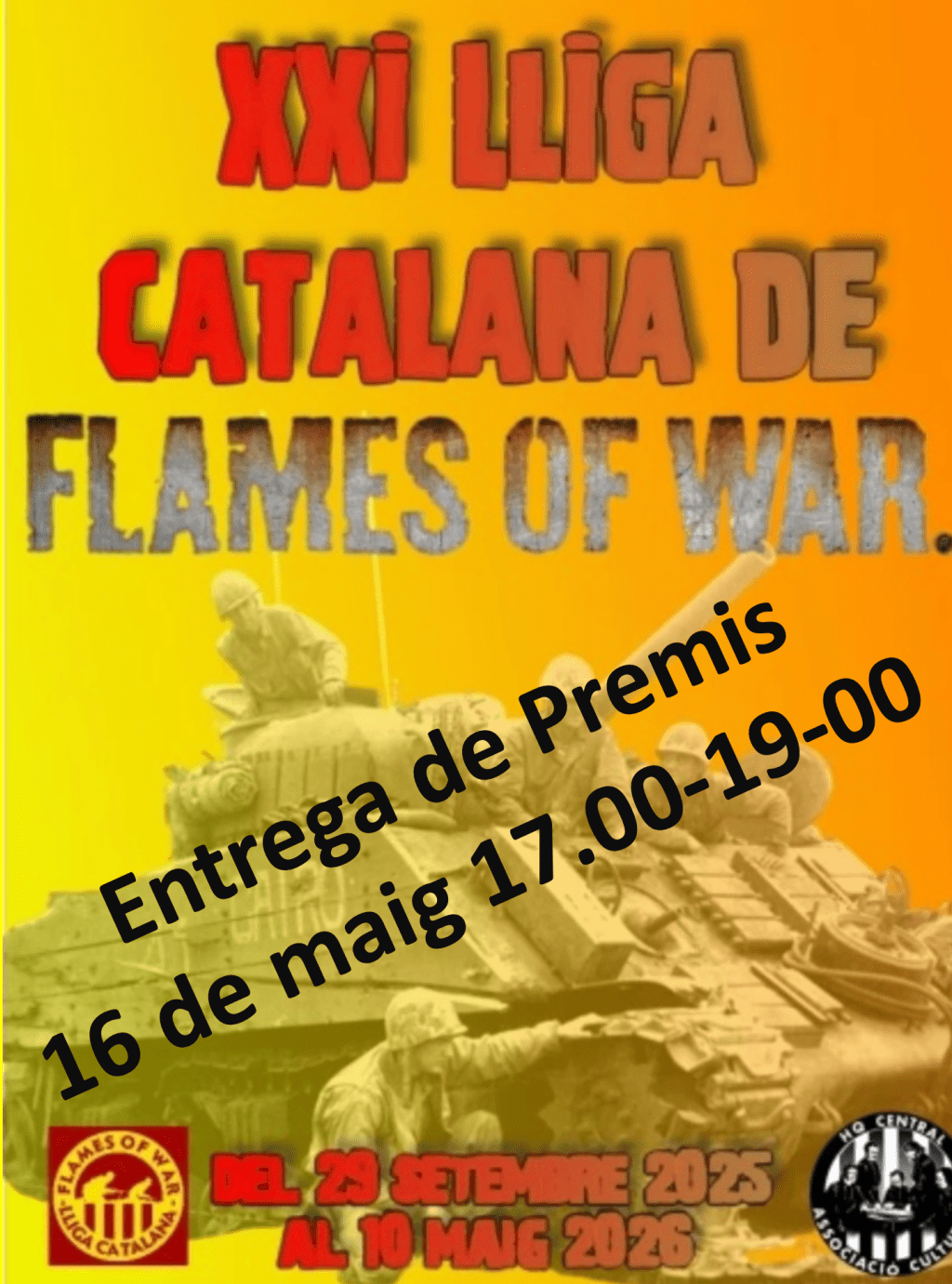 El comité organitzador es complau a convidar-vos a l’acte d’entrega de premis d’aquesta XXI Lliga Catalana de Flames of War a la seu del club de 17 a 19 hores. Us hi esperem.